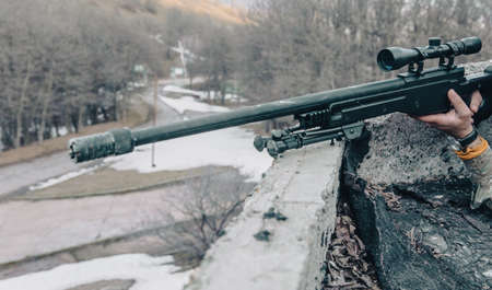 sniper rifle in the hands of a sniper