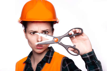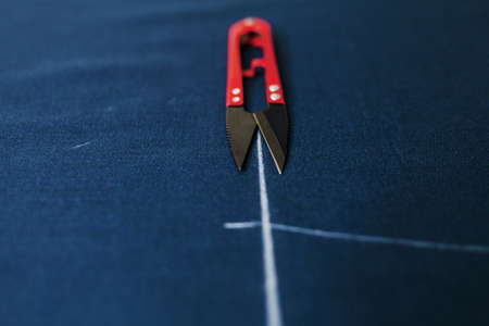 Scissors cut denim. Old jeans. Repair and sewing of clothes.