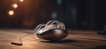 Yellow smiling face ball on wooden surface, close-up view. Happiness and positivity concept