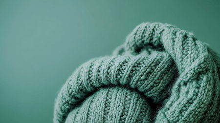 This beautiful image features a cozy soft knitted winter hat in calming green tones, showcasing its intricate texture against a soothing mint background.