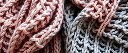 Detailed close-up of checkered wool knitwear texture, showcasing soft wool and intricate knitting patterns, perfect for cozy apparel.