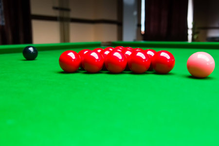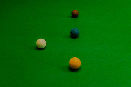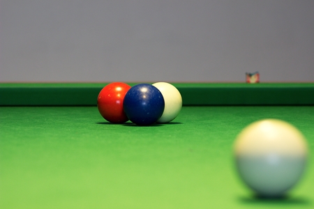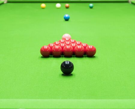 Snooker balls on a table. Ready to start playing. Matching the color and placement of colors.