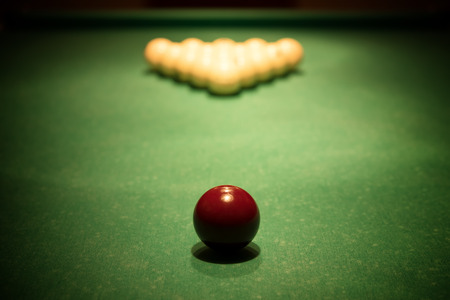 red billiard ball on green baize table