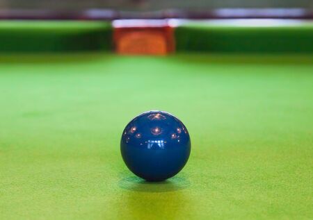 Blue ball on green snoker table.