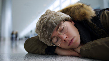 Young man enjoying a peaceful nap in a relaxed indoor setting