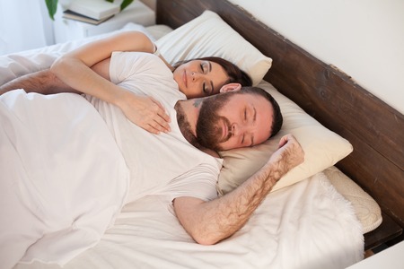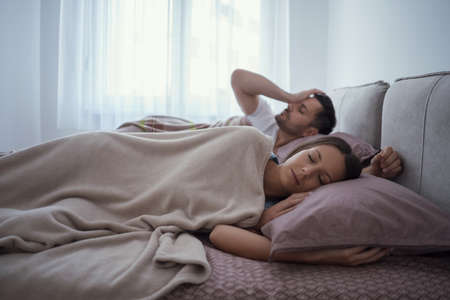 Wife can't sleep Because the husband snores loudly on bedroom in morning.