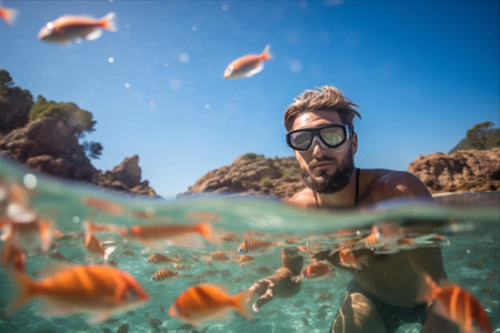 Underwater adventure a young man enjoying swimming in the clear turquoise waters