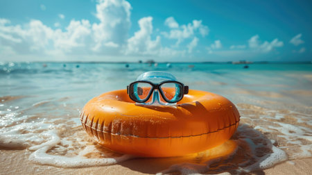 Bright Orange Float with Snorkel Mask on Sunny Beach Shoreline