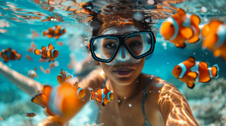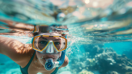Dynamic image of a person snorkeling in clear blue water, showing the beauty of underwater activities. A.I.