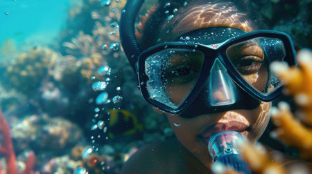 Snorkeling Adventure Young Boy Discovers Vibrance of Coral Reef in Crystal Clear Waters