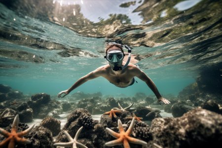 Exploring the Enchanting World: A Man's Journey Snorkelling and Gazing at Starfish in the Caribbean Sea