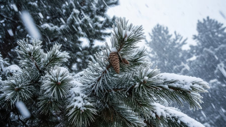 Experience the enchanting beauty of gently falling snowflakes in a tranquil winter scene, perfect for capturing the essence of the holiday season and winter charm.