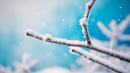 A serene winter landscape featuring snow-covered branches against a clear blue sky, perfect for seasonal or holiday designs