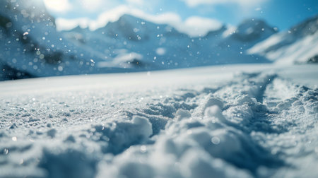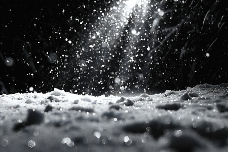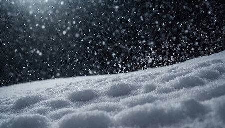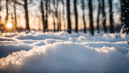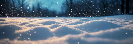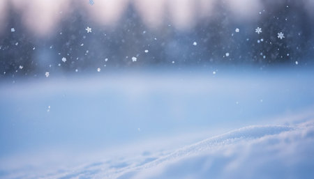 A stunning display of sparkling snow set against a backdrop of gently falling snowflakes and a serene forest, capturing the enchanting beauty and tranquility of winter, perfect for nature photography, seasonal projects, and peaceful designs.