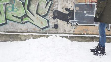 Homeless, poor man outside in winter