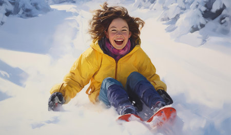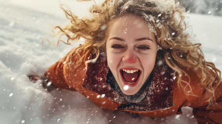 A young woman playing in the snow