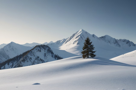 Lonely tree scenery in the snowy mountains