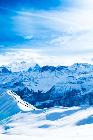Panoramic view of the snowy mountains in the Swiss Alps.