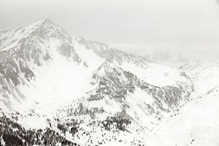 Mountain. Top view in the snow with fog, Italian Alps