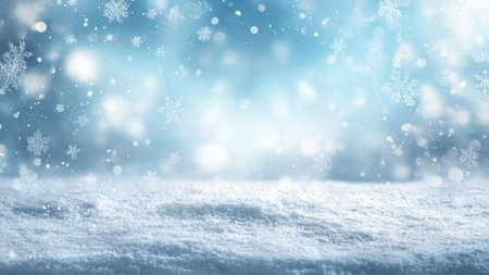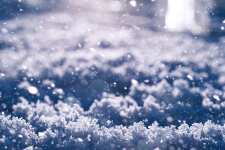 Snow surface close up and flakes background