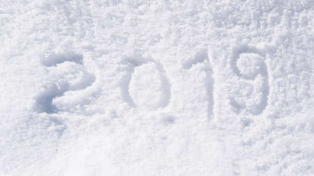 2019 new year & Christmas winter snow white background seasonal happy greeting on snowy fluffy ski surface backdrop for xmas holiday celebration backdrop