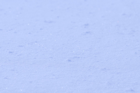 Close up macro photography texture of sparkling fresh white snow with light blue sky reflection tone. selective focus. winter christmas background.