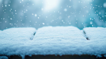 A close-up of soft snow covering a surface, illuminated by bright light and blurred background. This image captures the peaceful essence of a snowy winter day.