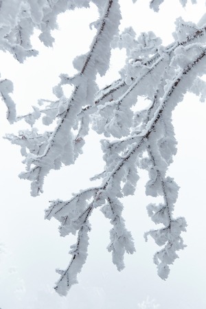 Winter close up of frosty snow covered branch