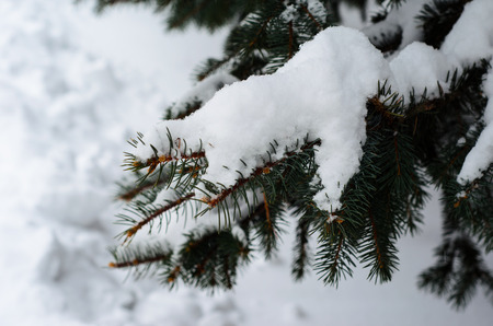 Fir tree needles with the thick snow