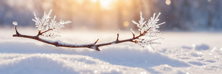 AI Generated. A branch covered in snow with the sun shining on it