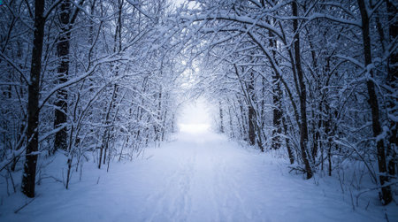 Snowy forest path in winter wonderland