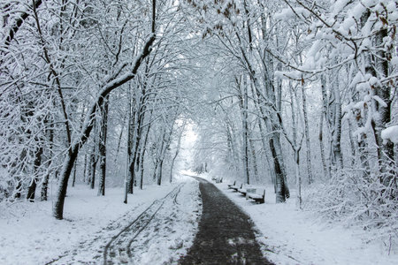 Amazing Winter landscape of South Park in city of Sofia, Bulgaria