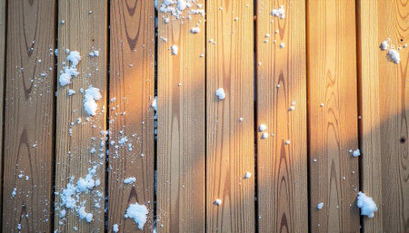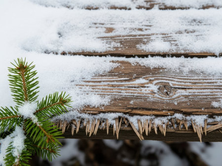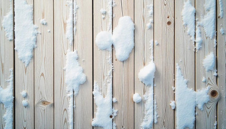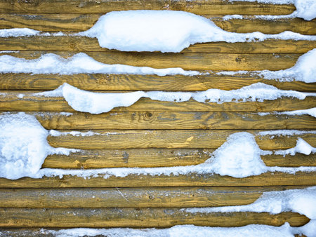 Serene Snowscape: Close-Up of Unpainted Wooden Planks