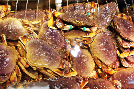 Live Dungeness crabs in a seafood market