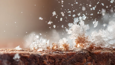 Shimmering granular frost surface with soft pastel light, perfect for abstract backgrounds, holiday design projects, and atmospheric texture content
