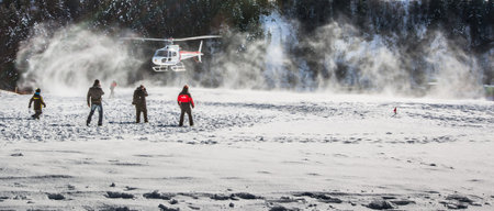 Chateau de Oex, Switzerland, 26th January 2013. Passengers waiting for a helicopter ride at the 35th International Hot Air Balloon festival. It is being held from 26th January to 3rd February 2013.