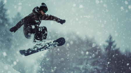 Snoboarder performing tricks on the snow