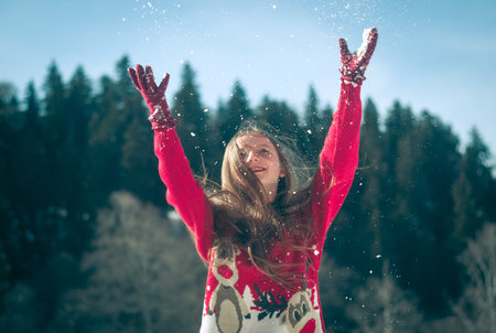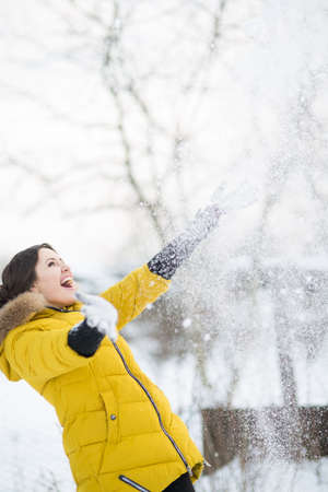 Young woman enjoying snow outdoor.