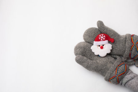 textile gloves in the snow. Winter holidays.
