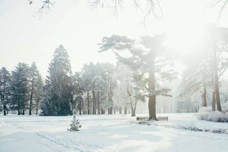 Winter park landscape with snow covered trees