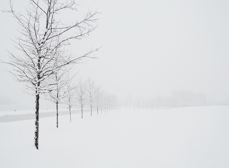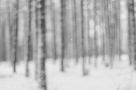 snow falling in winter with blurred tree on background