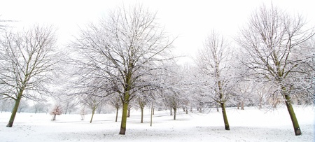 Snowbound trees in the park