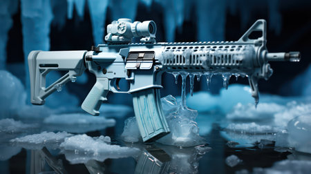 Futuristic machine gun on ice background. 3d illustration.