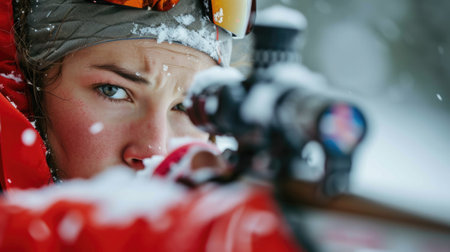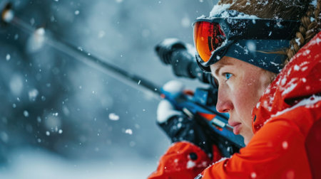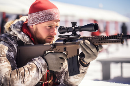 biathlete aiming accurately during the shooting portion generative ai