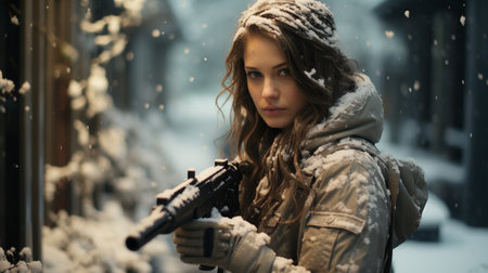 Armed Man in Snow. Generative AI.