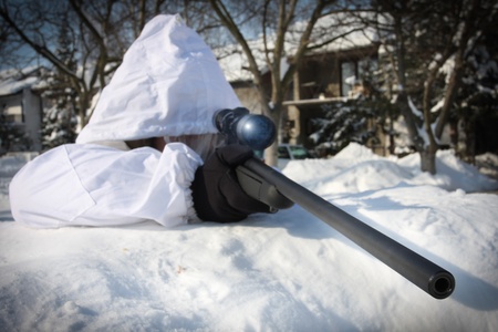 Sniper in white camouflage