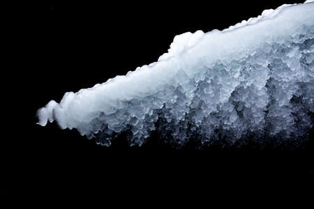 Macro background of snow and icicles. Close-up winter landscape. Beautiful blue ice and snow formations.