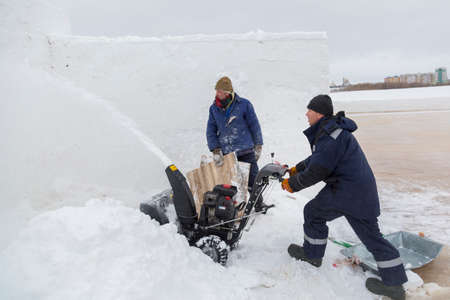 Tracked snow blower at work. After heavy snowfalls, snow is removed everywhere.