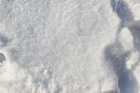 White snow texture, winter season background. fresh snow close up, top image