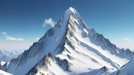 mountain peak, with snow-capped slopes and a clear blue sky, emphasizing the grandeur and majesty of the natural world.